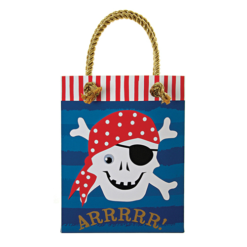 Морское путешествие по семи морям может стать непростым делом для маленького пиратика, поэтому убедитесь, что он не завершит свое путешествие без добычи!Пакеты украшены мотивом из черепа и скрещенных костей, с узорами в виде океана и полосами. Окантованы естественной картонной огранкой. Украшены игрушечным глазком и имеют золотые веревочные ручки.